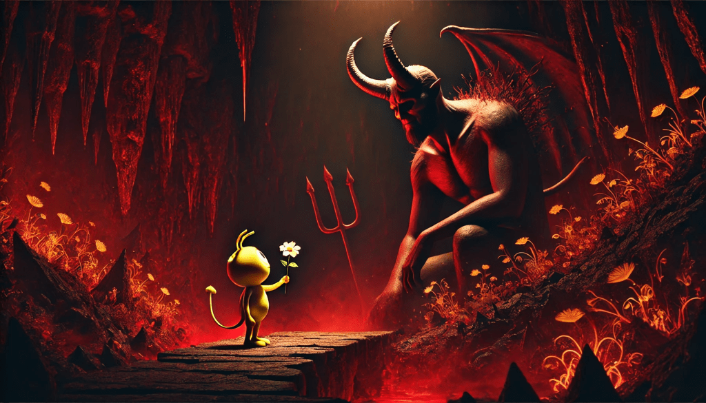 The devil laughed, a sound that echoed through the underworld like thunder. “You think kindness can defeat me? Foolish minion.”