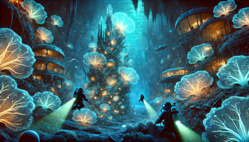 Deep in the abyssal plains of the ocean, far beyond the reach of human eyes, a new form of life had been quietly thriving. This society of water creatures, known as the Luminara, had evolved in the darkest depths, developing extraordinary abilities and intelligence. For eons, they lived unnoticed, their bioluminescent cities illuminating the ocean floor with a serene, otherworldly glow.